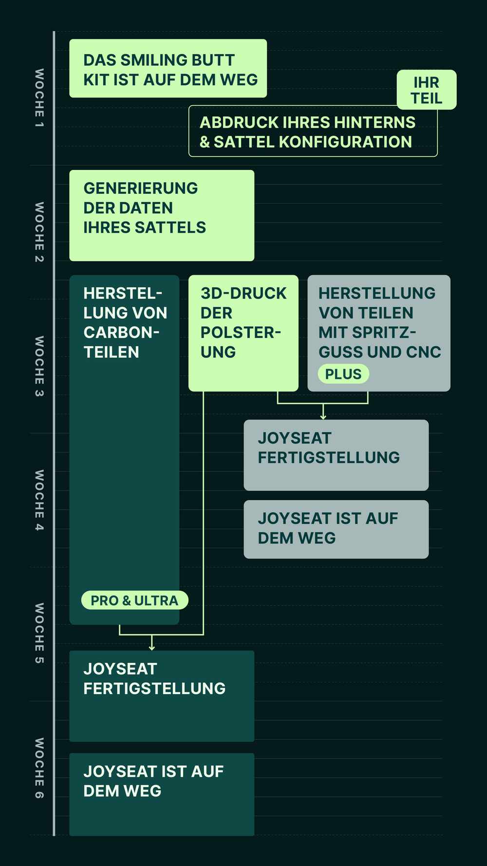 Füllen Sie einen Online-Konfigurator aus, der aus 10 Fragen zu Ihrem Fahrrad, Ihrem Fahrstil, Ihnen selbst und dem gewünschten Aussehen Ihres Joyseats besteht.