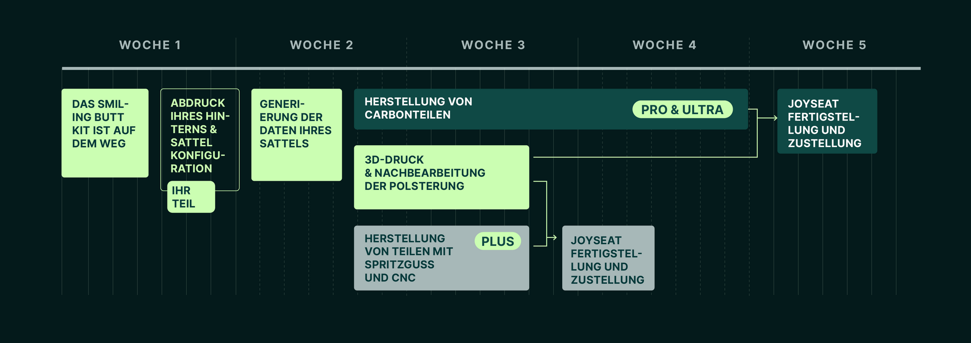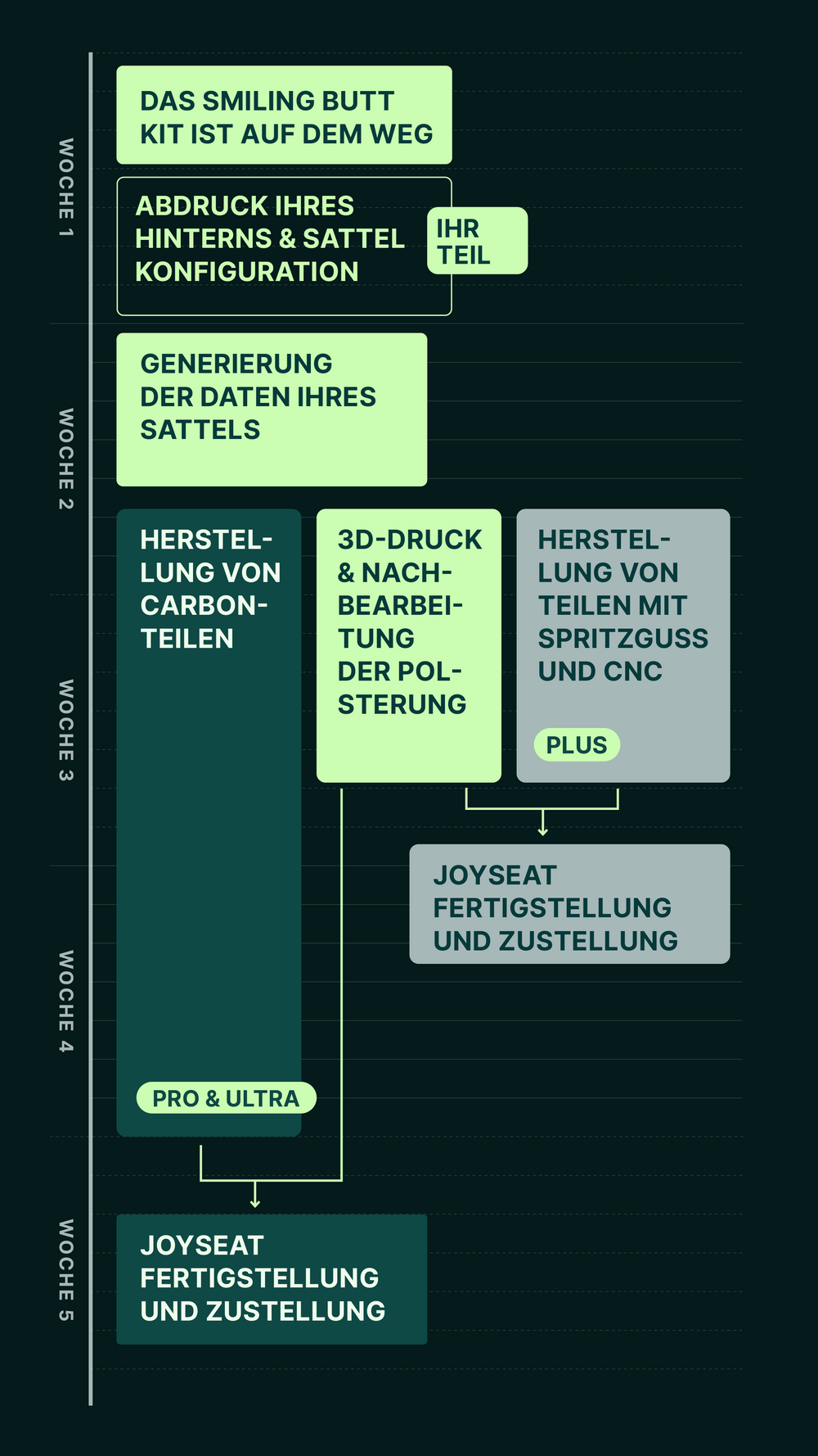 Füllen Sie einen Online-Konfigurator aus, der aus 10 Fragen zu Ihrem Fahrrad, Ihrem Fahrstil, Ihnen selbst und dem gewünschten Aussehen Ihres Joyseats besteht.